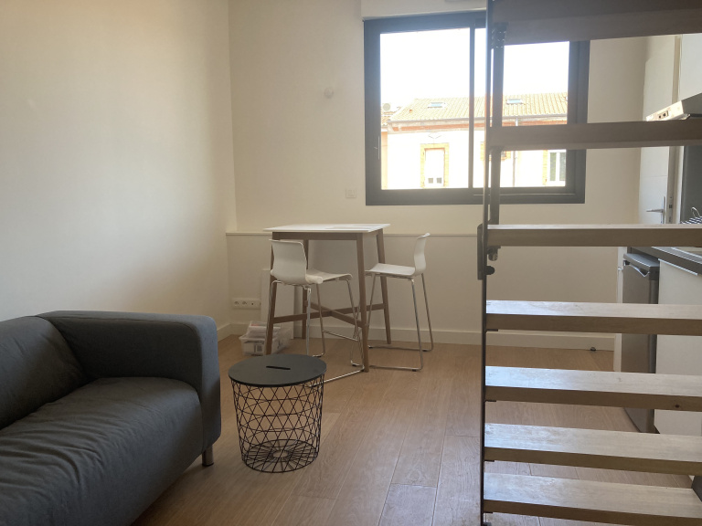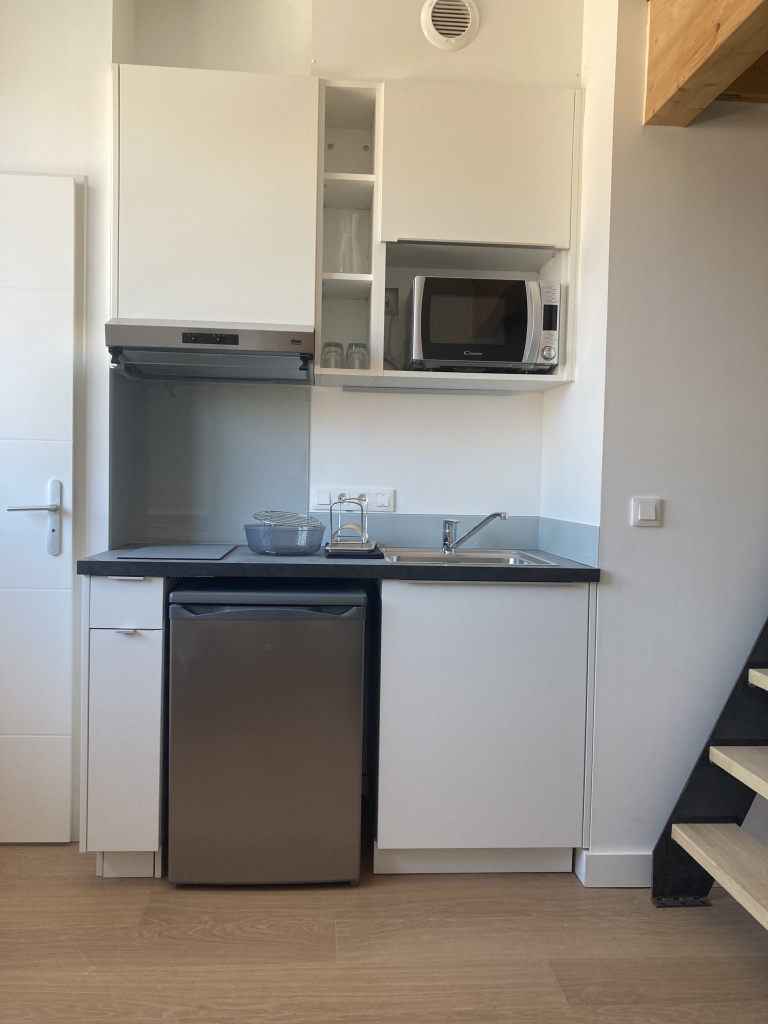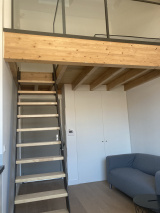 A proximité de l'avenue de la Colonne, au dernier étage d'un immeuble ancien entièrement réhabilité, T1 de 22m2 (26m2 au sol). Vous serez les 1ers locataires de cet appartement neuf et qui est en train d'être meublé. Pièce de vie avec cuisine équipée. Un escalier permet d'accéder à un espace chambre en mezzanine. Appartement climatisé. Contactez Immobilier du Palais, Aurore 06 77 48 42 88