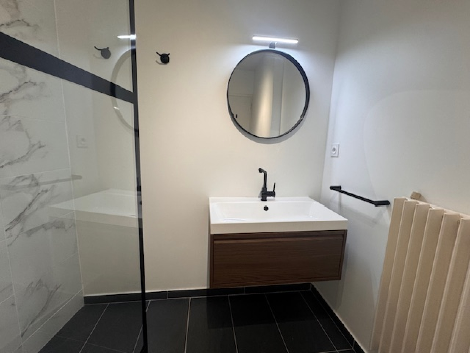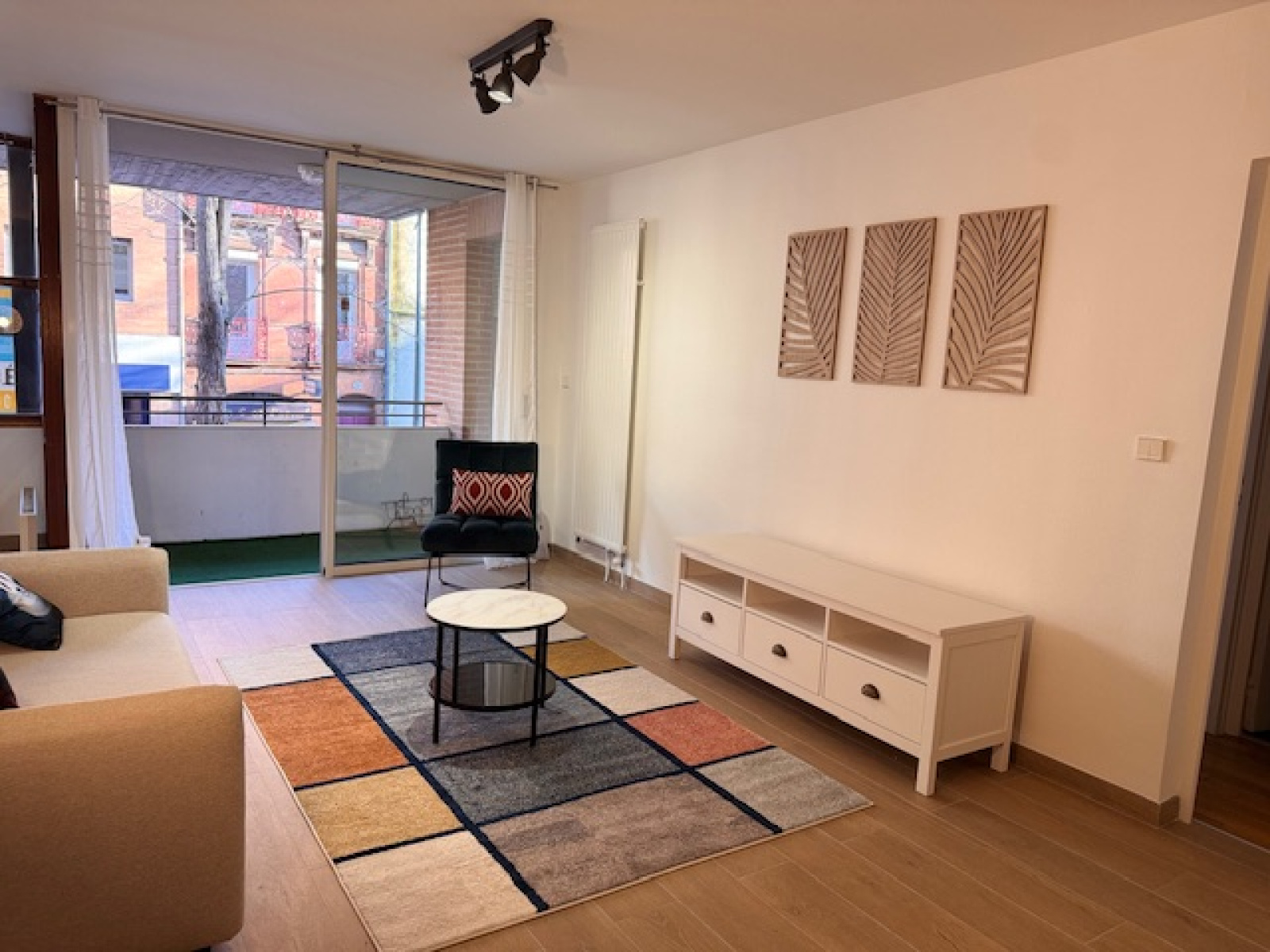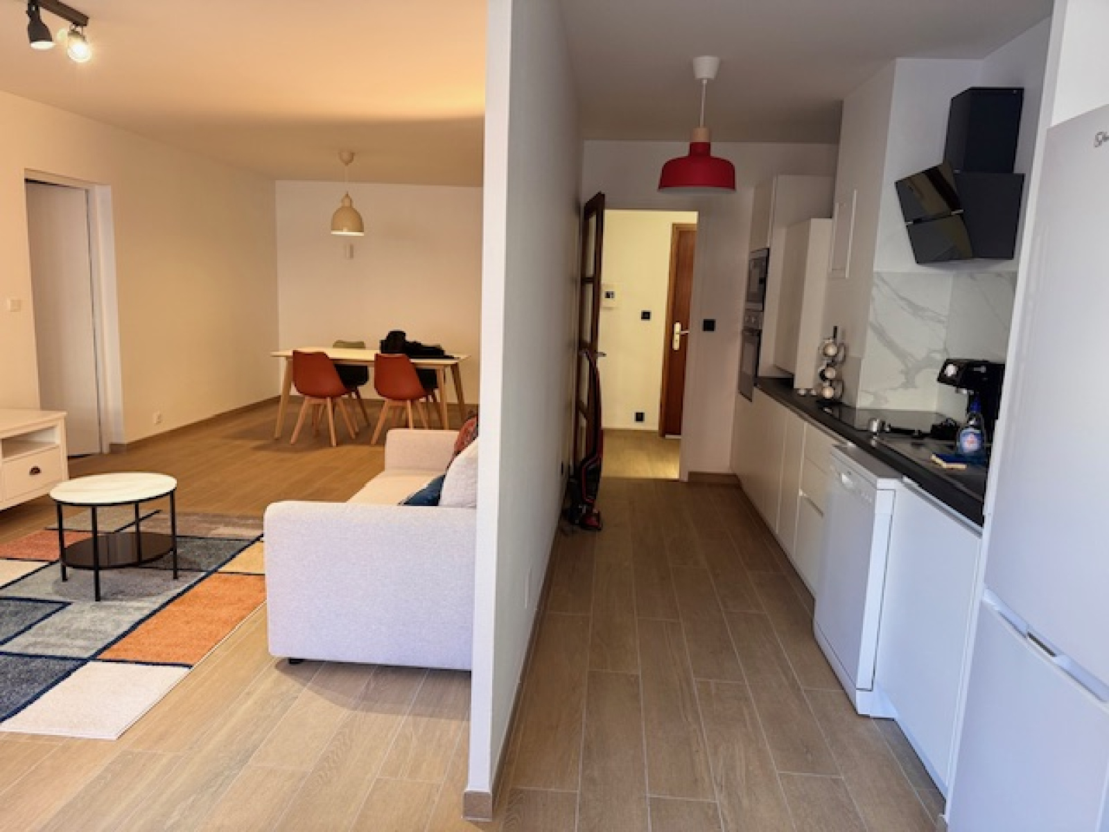 L'appartement se compose d'une entrée - d'un vaste séjour - d'une grande chambre avec rangements - d'une cuisine entièrement équipée - d'une salle de bain et d'un WC séparé .