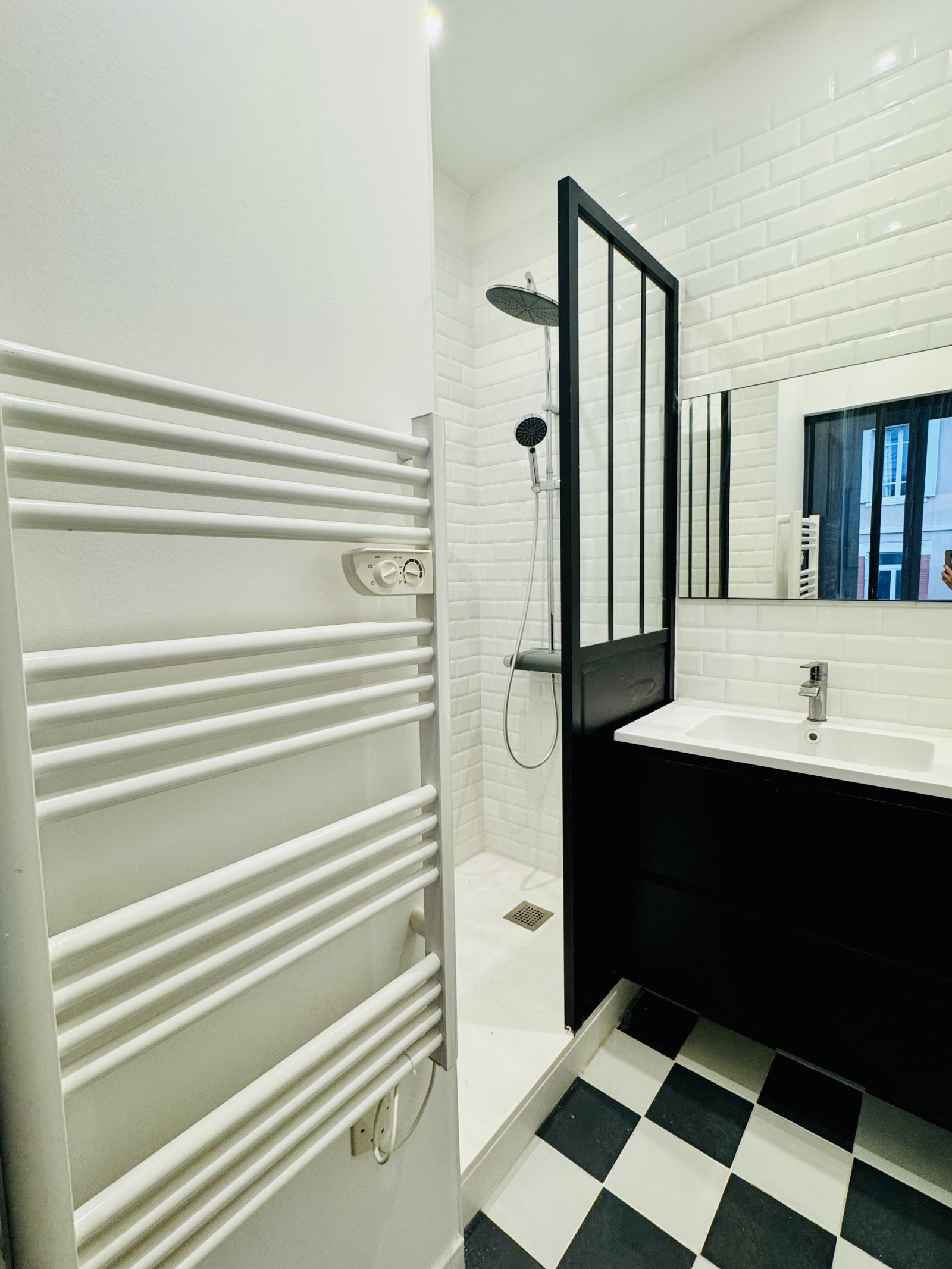 Emplacement premium en plein centre ville rue Bellegarde pour ce T4 de 106m2 rénové ayant conservé tout le charme de l'ancien. Vaste séjour de 40m2 s'ouvrant sur une petite terrasse au calme. Cuisine séparée haut de gamme en partie équipée avec de nombreux rangements (four et micro ondes encastré, plaques induction et hotte). Trois chambres dont une donnant sur la cour avec sa propre salle de bains, et une salle d'eau indépendante avec WC. Exceptionnel pour ce quartier, un garage fermé dans la cour (2,6m de large / 5m de profondeur) en supplément (150€) et une grande cave. Pas de colocation. Contactez Immobilier du Palais, Clémence 06 23 17 37 98 ou Aurore 06 77 48 42 88
