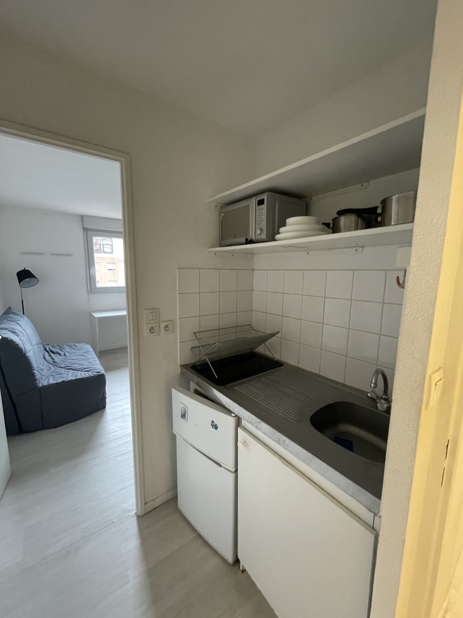 Idéalement situé à deux pas de la station de métro Saint Cyprien, petit studio meublé. Il présente une entrée avec kitchenette, une salle de bain avec WC et une pièce principale.Petit plus une place de parking. Contactez Damien au 0769384860.