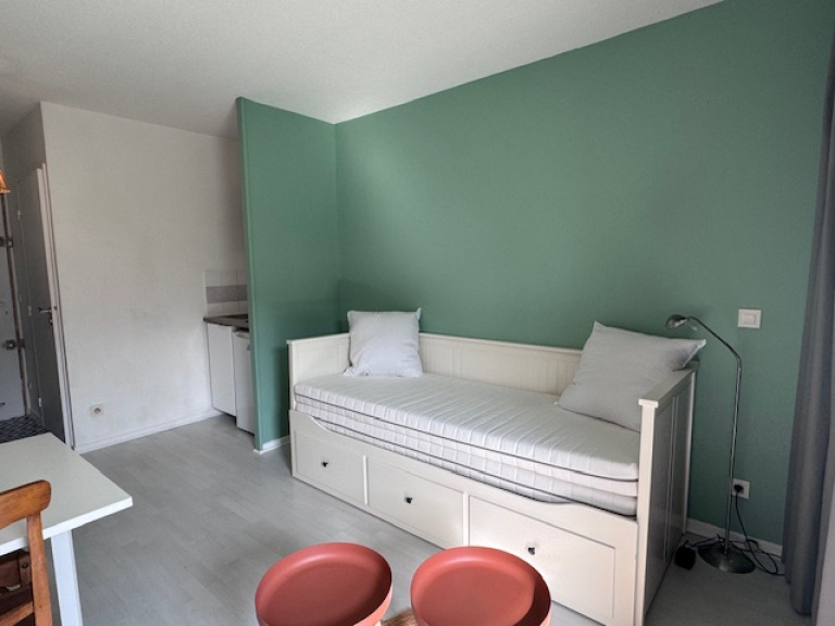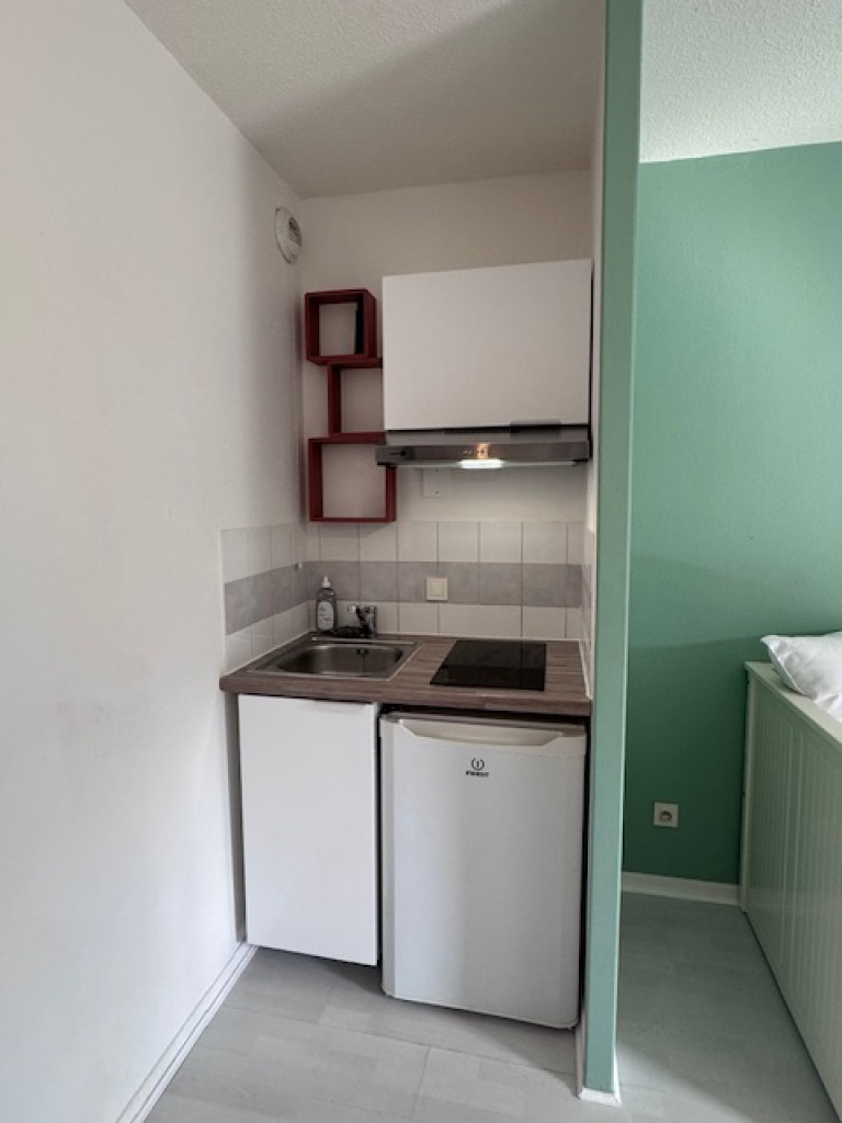 Idéalement situé en face de l'arrêt de tram Arènes Romaines, dans le quartier de Purpan, charmant studio meublé qui vient d'être entièrment rénové. Une pièce principale avec kitchenette équipée (plaques, hotte, frigo/congélateur, micro-ondes). Grand placard aménagé. Salle de douche avec WC. Place de parking privative. Idéal étudiants, cet appartement était loué 510€ CC. Potentiel supplémentaire de revenus locatifs en airbnb. Contactez Immobilier du Palais, Clémence 06 23 17 37 98 ou Valérie 06 15 27 27 45