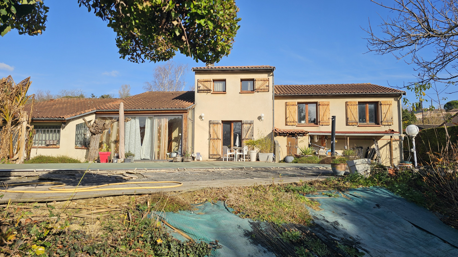 Découvrez cette villa située sur la commune de Montrabé, appréciée pour son cadre de vie et son environnement résidentiel. Cette superbe villa se distingue par ses volumes généreux et sa conception pensée pour le confort de toute la famille. Dès l'entrée vous serez séduit par un vaste séjour/salle à manger de 63m2 baigné de lumière sublimé par un plafond cathédrale et une cheminéee centrale. La cuisine attenante de 17m2 fonctionnelle et conviviale s'intègre parfaitement à l'espace de vie et est idéale pour recevoir et partager des moments en famille. Le rez de chaussée accueille cinq chambres parfaitement adaptées à une grande famille ainsi que deux salles de bains. A l'étage, une mezzanine surplombant le séjour crée un espace supplémentaire pouvant servir de bureau. Elle dessert aussi une sixième chambre et une troisième salle de bains. Des travaux importants d'aménagement intérieur sont à prévoir, laissant une liberté totale de réinterprétation des espaces selon vos goûts et vos projets. Le terrain de 3200m2 sans vis à vis offre un cadre de vie privilégié et comprend une piscine, un terrain de basket, une cuisine d'été, et des toilettes permettant de profiter pleinement des beaux jours.
