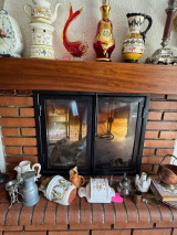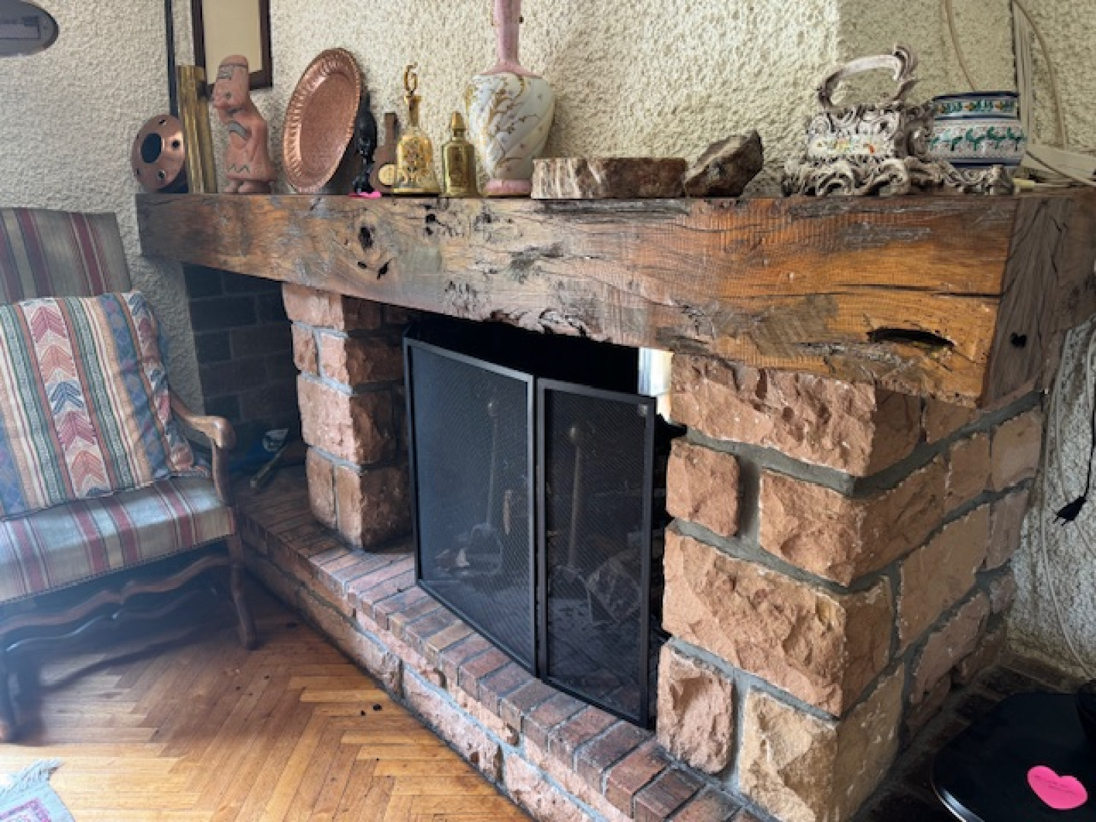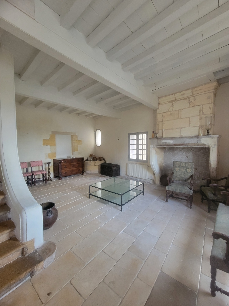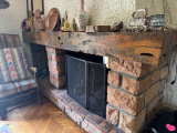 L'originalité : la cheminée traversante entre salon et cuisine qui permet de l'utiliser en barbecue